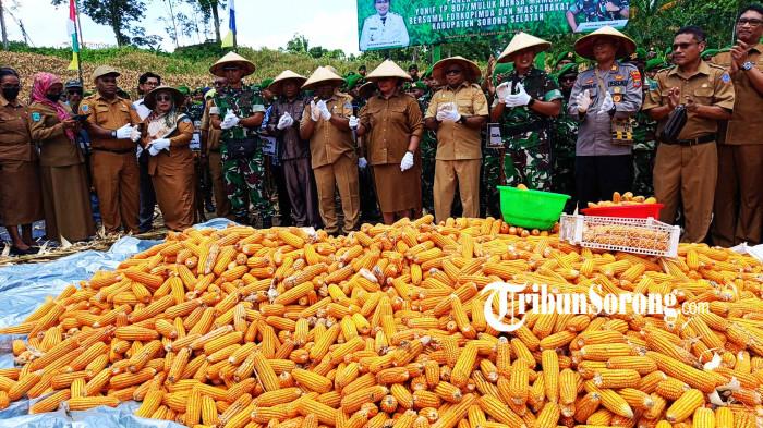 Bupati Sorong Selatan Ikut Panen Jagung Bersama Yonif TP 807, Dorong Kemandirian Pangan