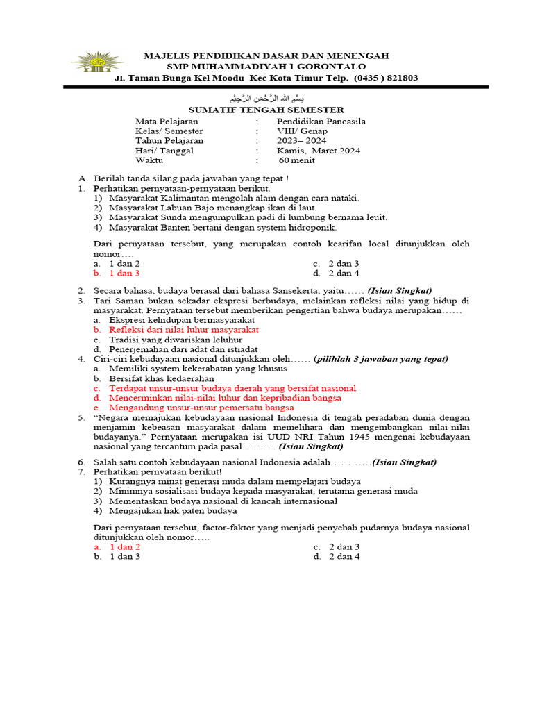 Latihan soal ini menyoroti peristiwa bersejarah seperti Sumpah Pemuda dan peran Kongres Pemuda II dalam memperkuat persatuan bangsa. Dengan dilengkapi kunci jawaban, materi ini menjadi bahan belajar yang sangat berguna bagi siswa yang sedang mempersiapkan diri menghadapi ujian semester.