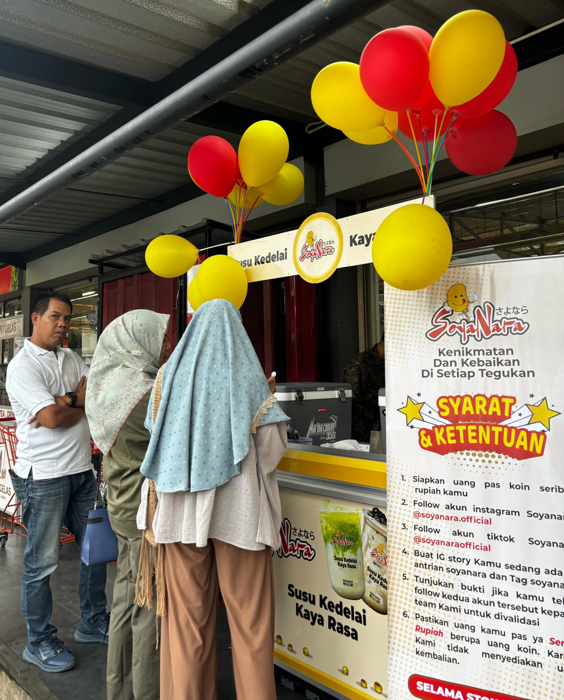 Yang bikin launching kali ini spesial banget: ada promo unik di mana pengunjung bisa beli 1 cup Soyanara cuma pakai koin seribu rupiah! Iya, beneran cuma seribu! Di hari pertama, Soyanara bawa 200 cup dan semuanya langsung ludes diburu pembeli. Wajah-wajah senang, tawa, dan antusiasme mereka bikin acara ini terasa hangat dan seru banget.